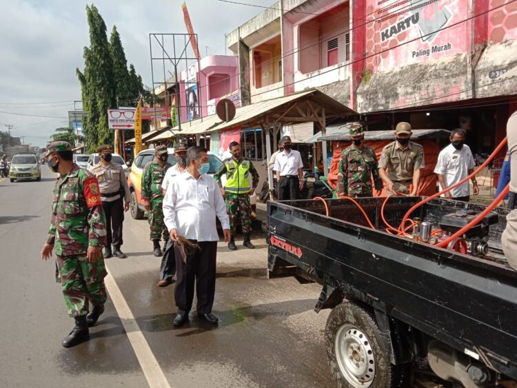 Dipimpin Danramil. Forkopimcam Semprot Disinfektan di Pasar Way Jepara