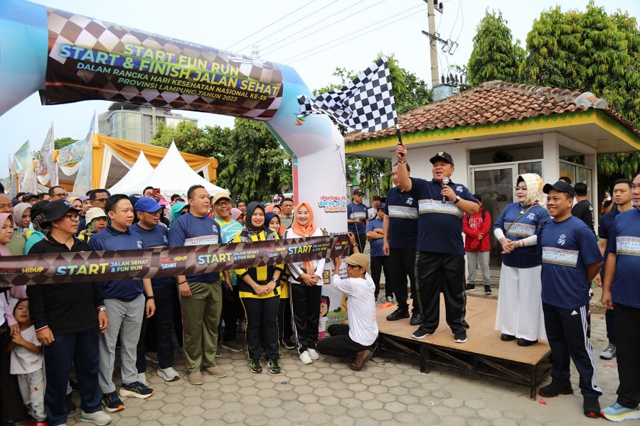 Gubernur Arinal Bersama Ribuan Mastarakat Meriahkan Jalan Sehat dalam Rangka Peringatan Hari Kesehatan Nasional ke-59 Tahun 2023