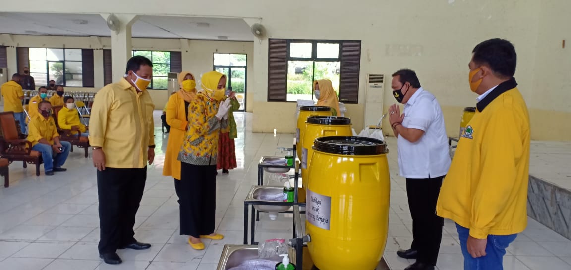 Ikatan Istri dan Pengurus DPD Golkar Lampung Bagi 100 Wastafel dan 15 Ribu Masker