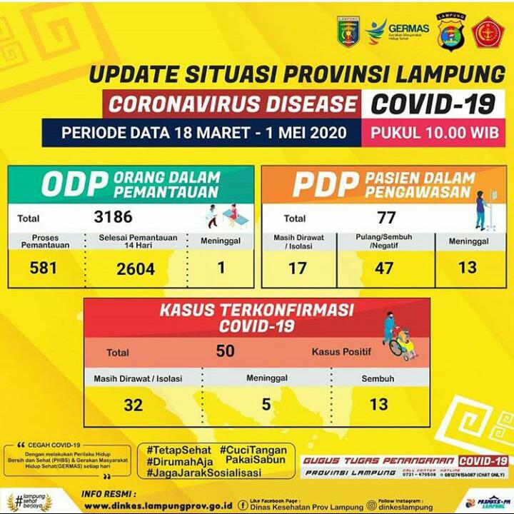 Nambah Lagi, Positif Covid-19 di Lampung Jadi 50 Orang