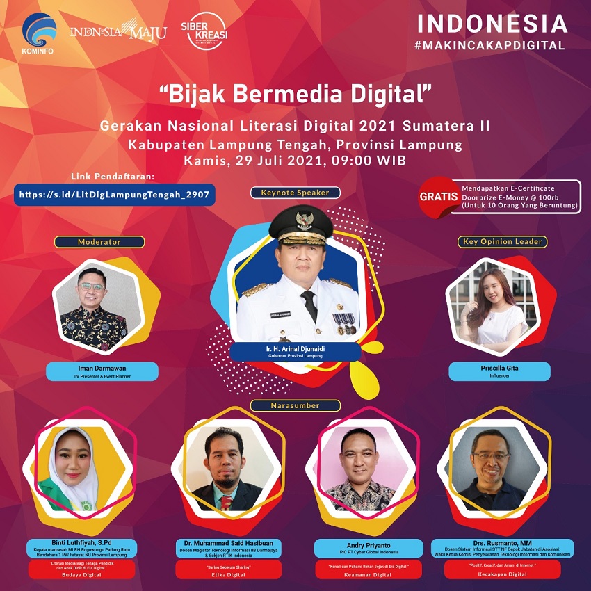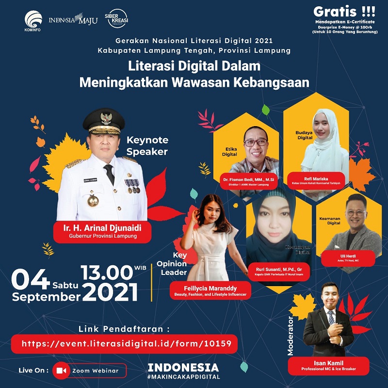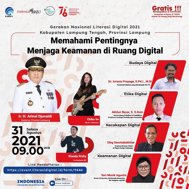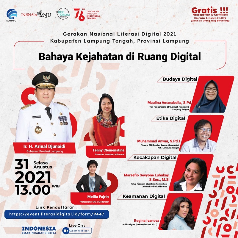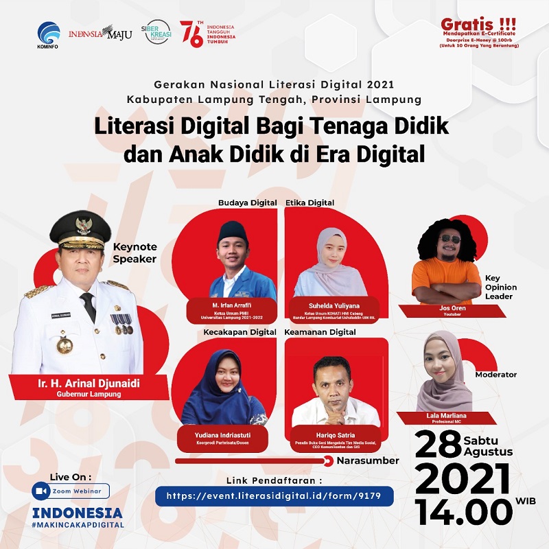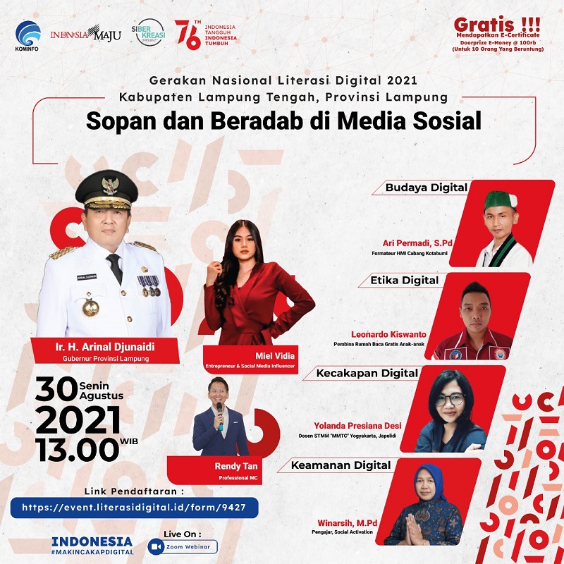 Webinar Literasi Digital di Lampung Tengah, Peserta Dapat Materi Digital Skill, Digital Safety, Digital Ethic dan Digital Culture