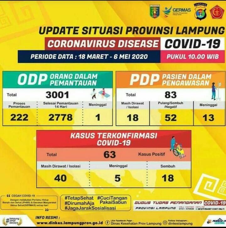 Nambah Terus, Positif Covid-19 di Lampung Jadi 63 Orang