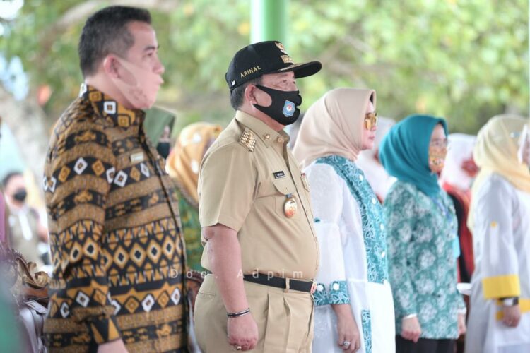 Bagikan Bantuan Covid-19 di Piabung, Arinal dan Riana Saling Memuji