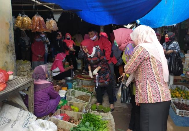 Ketua PKK Lamteng Sosialisasi New Normal di Pasar Simpang Agung