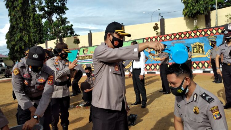 Naik Pangkat, 59 Personel Polres Tanggamus Dimandiin Air Kembang