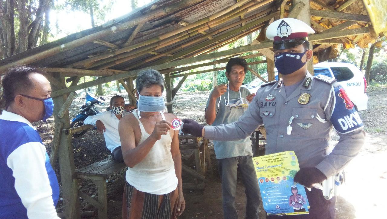 Satlantas Polres Tanggamus Bagi Masker di Jalinbar Terbaya