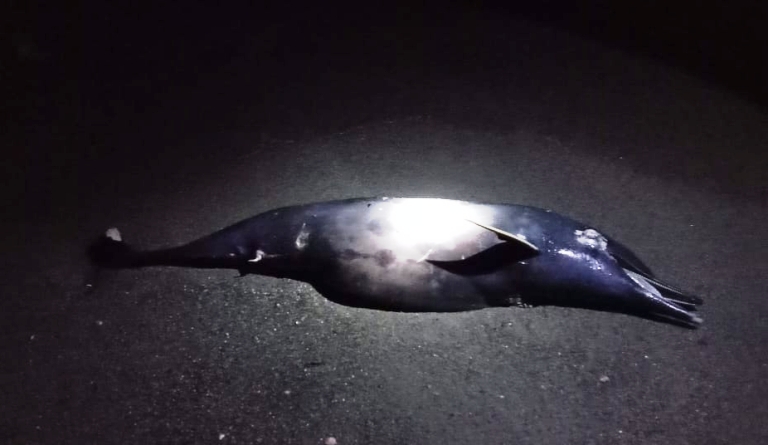 Polsek Pematang Sawa Bersama Warga Evakuasi Bangkai Lumba-Lumba