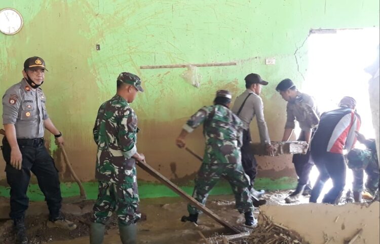 Polsek Wonosobo dan Semaka Bersama TNI serta BPBD Bersihkan Sisa Longsor di Masjid Semaka