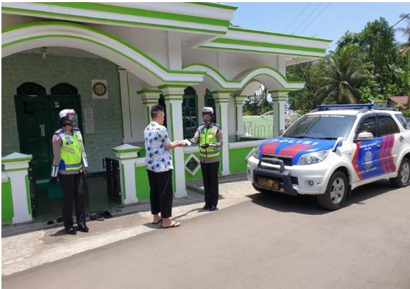 Polwan Beri Pengamanan Sholat Jumat Sekaligus Imbau Prokes