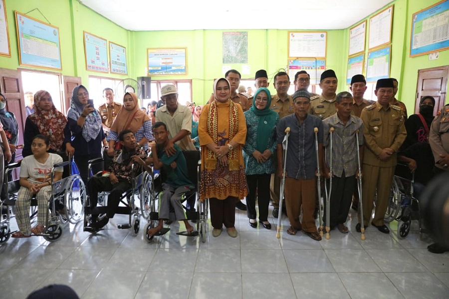 Ibu Riana Sari Arinal Berikan Bantuan Sembako dan Kursi Roda kepada Warga Lansia dan Disabilitas di Lampung Utara