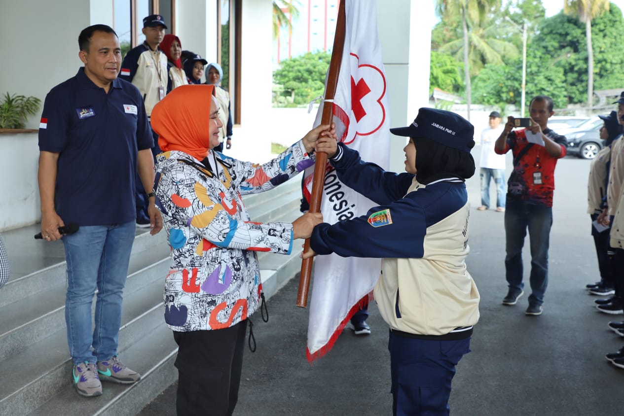 Ibu Riana Sari Arinal Lepas Kontingen PMR Lampung Ikuti Jumpa Bakti Gembira Tingkat Nasional IX Tahun 2023