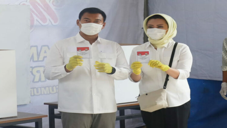 Datang dengan Seragam Serba Putih Bersama Isteri, Rycko Menoza Nyoblos di TPS 06 Sumur Batu