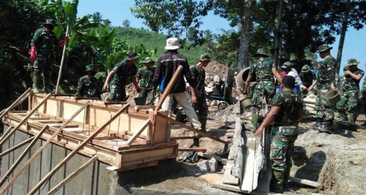 TMMD ke-108, Prajurit Kodim 0421 dan Warga Bahu Membahu Bangun Jalan dan Jembatan