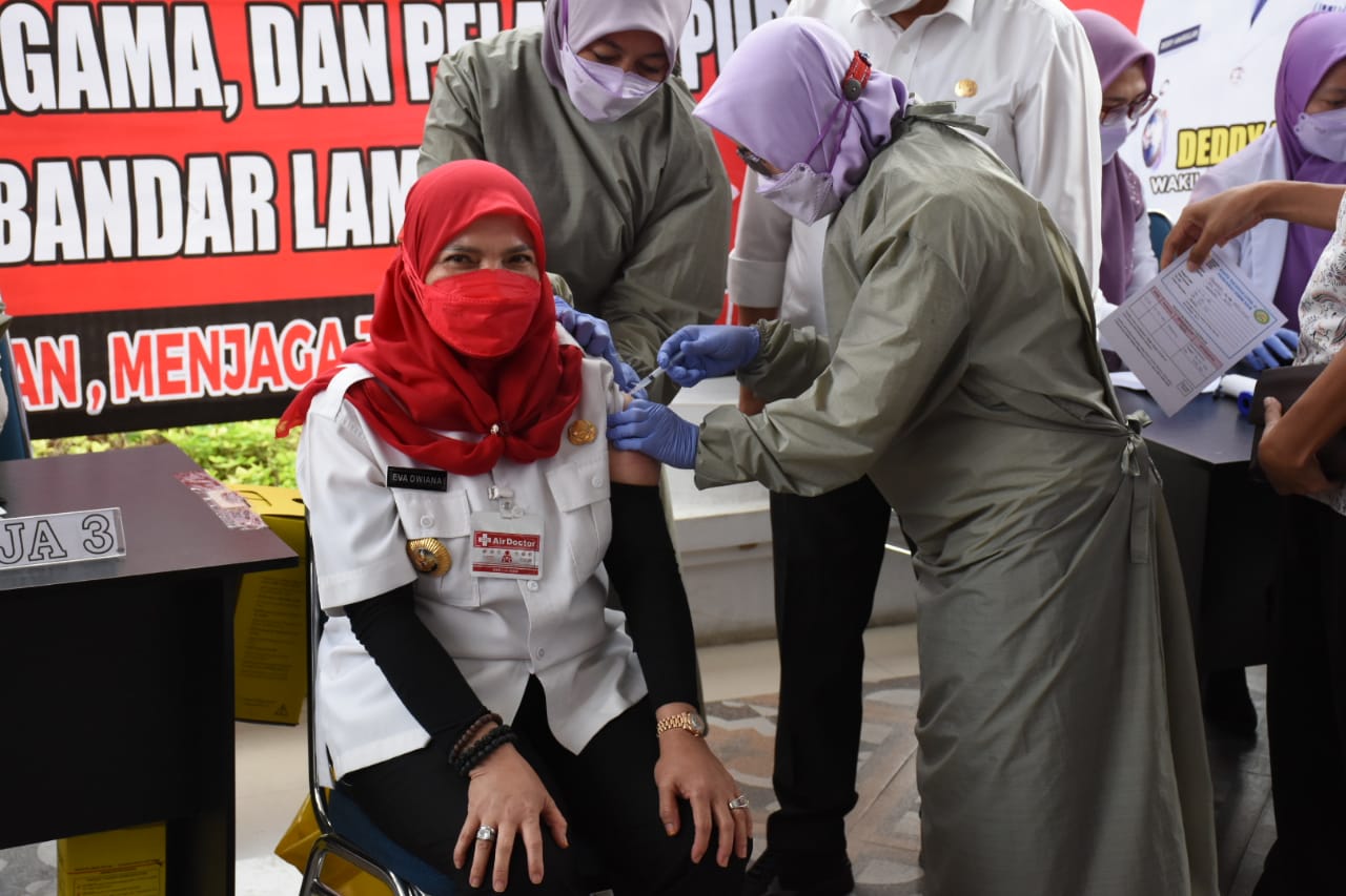 Walikota Bandar Lampung Eva Dwiana Melaksanakan Vaksin Covid-19 Tahap 2