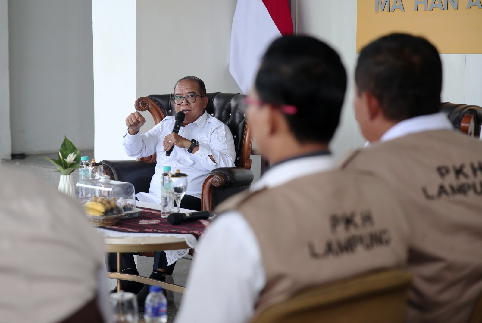 Gantanews.co – Pj. Gubernur Lampung Samsudin menerima kunjungan Pendamping Program Keluarga Harapan (PKH) Lampung di Mahan Agung, Rumah Dinas Gubernur Lampung, Bandarlampung, Rabu (6/11/2024).