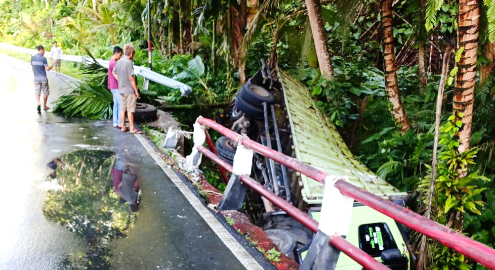 Gantanews.co – Sebuah kecelakaan tunggal melibatkan truk Hino BB 8137 FC bermuatan barang rongsokan di Jalan Lintas Barat (Jalinbar), tepatnya di Pekon Kota Karang, Kecamatan Pesisir Utara, Kabupaten Pesisir Barat, Senin (6/1). Truk tersebut terguling setelah berusaha menghindari kendaraan lain yang menyalip dari arah berlawanan.