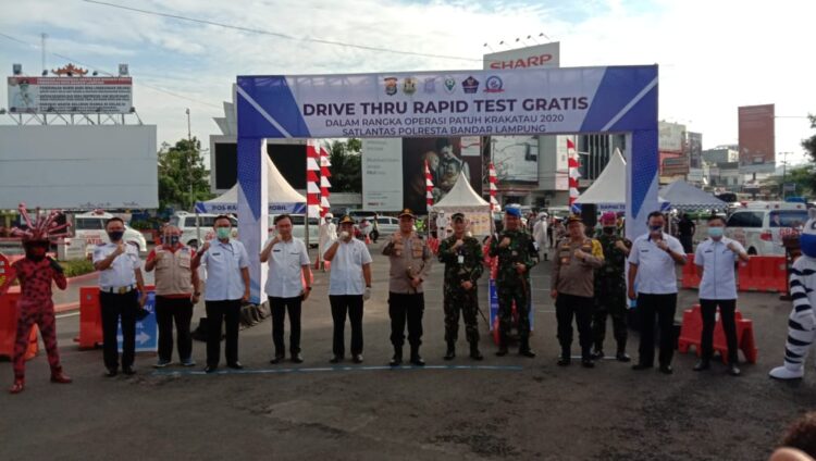 GANTANEWS.CO, Bandar Lampung – Satuan Lalu Lintas (Satlantas) Polresta Bandar Lampung melaksanakan Drive Thru Rapid Test Gratis dalam rangka penutupan Operasi Patuh Krakatau 2020 di Tugu Adipura, Rabu (5/8/2020).