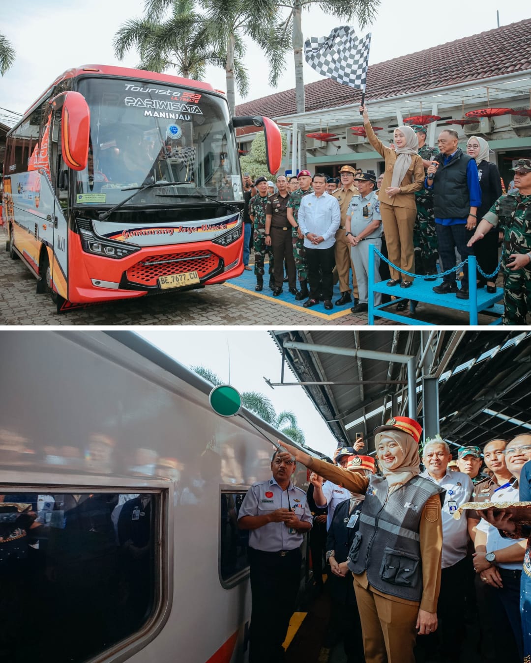 Dalam sambutannya, Wagub Jihan menyampaikan rasa syukur atas perluasan jangkauan program tahun ini. “Berbeda dengan tahun sebelumnya yang hanya menggunakan moda transportasi kereta api, tahun 2026 ini Pemerintah Provinsi Lampung turut menghadirkan moda transportasi bus,” ujar Wagub Jihan.