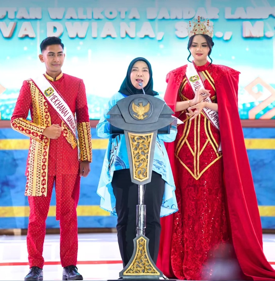 Gantanews.co — Walikota Bandar Lampung, Hj. Eva Dwiana Menghadiri Acara Grand Final Muli Mekhanai Kota Bandar Lampung Tahun 2025 yang bertempat di Aula Gedung Semergou, Sabtu Malam (26/04/2025).