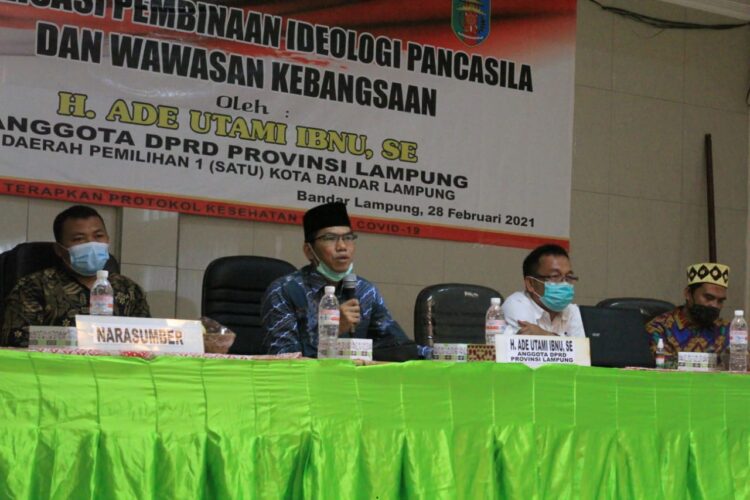 Hal tersebut merupakan benang merah dalam Sosialisasi Pembinaan Ideologi dan Wawasan Kebangsaan yang diselenggarakan Anggota DPRD Lampung, Ade Utami Ibnu di aula Asrama Haji, Lungsir, Bandar Lampung, Minggu (28/2/2021).