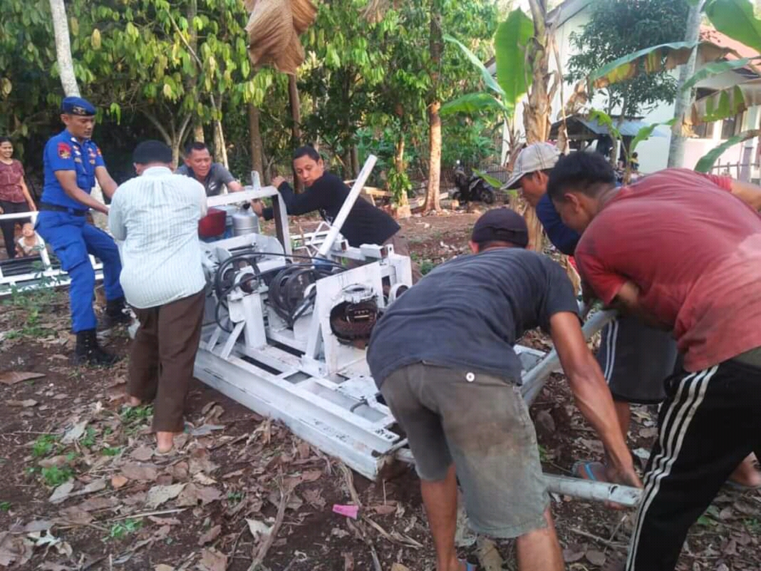 Lampung Selatan – Warga Kampung Kayu Tebu Desa Kalawi, Bakauheni, Lampung Selatan (Lamsel) merasa senang dapat bantuan sumur bor. Bantuan itu dari Water For Indonesia (WaterID) kerja sama dengan Relawan Literasi Perahu Pustaka Lampung, Minggu (8/12/19).